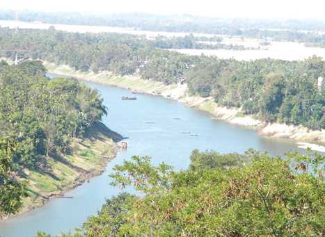 It enters Bangladesh near Dhubri and flows southward. The Brahmaputra receives numerous tributaries in its 750 km long journey through the Assam Valley. The catchment area of the Brahmaputra receives heavy rainfall.